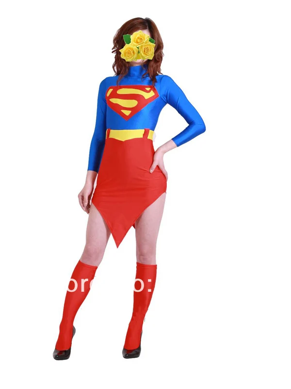 Free Shipping DC Comics Superman Red & Blue DC comics Supergirl Spandex Costume Halloween Carnival costumes play are attractive to buyers from around the world