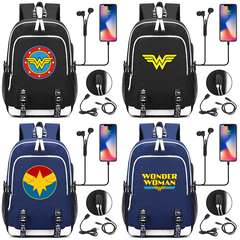 60% OFF DC Wonder Woman USB Backpack Laptop Bags Cosplay Comics Superhero Kids Teens Shoulder Travel Bags S